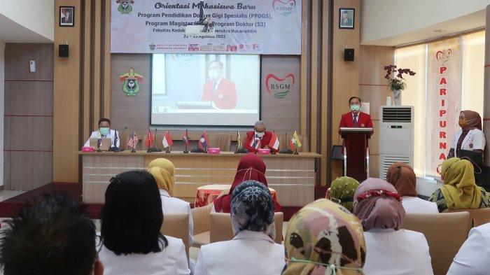 TRIBUNHEALTH.COM - Fakultas Kedokteran Gigi (FKG) Universitas Hasanuddin (Unhas) menggelar kegiatan Orientasi Penerimaan Mahasiswa Baru Program Pendidikan Dokter Gigi Spesialis (PPDGS), Program Magister (S2) dan Program Doktor (S3) Tahun Ajaran 2022/2023. Kegiatan berlangsung pukul 09.00 WITA di Aula Halimah Dg. Sikati, Rumah Sakit Gigi dan Mulut Pendidikan (RSGMP) Unhas, Senin (22/08).