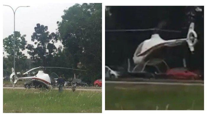 Helikopter tersebut berhenti di lapangan selama kurang lebih 15 menit di dekat Setia Eco Park.