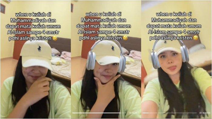 "When u kuliah di Muhammadiyah dan dapat mata kuliah umum Al-Islam sampe 4 smstr pdhl aslinya Kristen," demikian ditulis Monica Eliada di video di akunnya di TikTok.