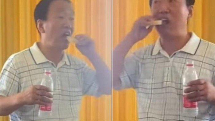 Agar meyakinkan, pria tersebut mengambil sebatang sabun dan mulai mengunyahnya, sebelum mencucinya dengan seteguk air.
