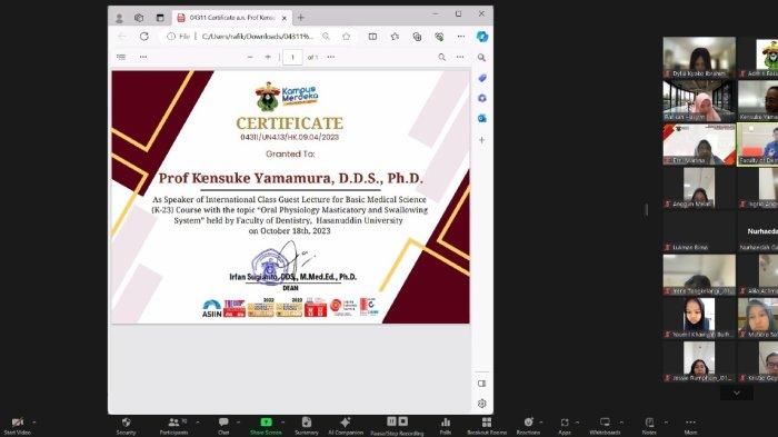 TRIBUNHEALTH.COM - Fakultas Kedokteran Gigi (FKG) Universitas Hasanuddin (Unhas) kembali menyelenggarakan Kuliah Tamu dengan menghadirkan pembicara asal Jepang (Prof. Kensuke Yamamura, D.D.S., Ph.D) dari Division of Oral Physiology, Faculty of Dentistry & Graduate School of Medical and Dental Sciences Niigata University, Japan.