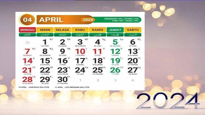 Berikut kalender April 2024 yang dilengkapi tanggal merah, libur nasional dancuti bersama menyambut Idul Fitri 2024 atau 1445 Hijriah.