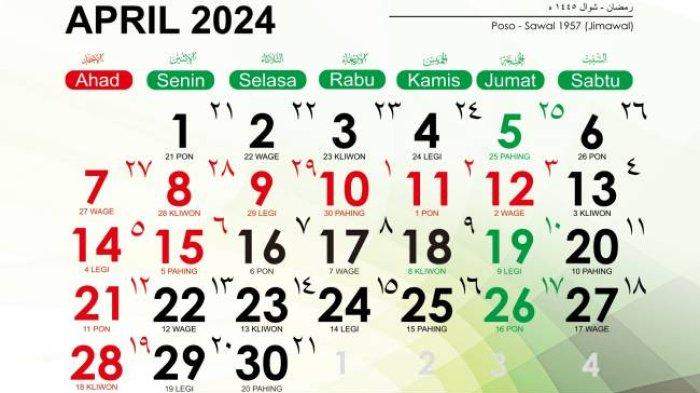 Artikel ini telah tayang di Tribunnews.com dengan judul Kalender April 2024: Tanggal Hijriah, Weton Jawa, Libur Nasional dan Cuti Bersama Idul Fitri 2024
