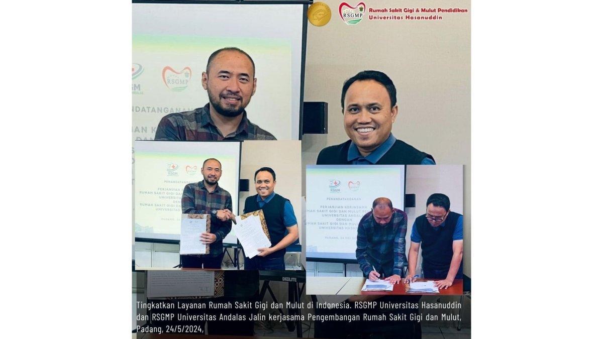 TRIBUNHEALTH.COM - Dalam upaya meningkatkan kualitas pelayanan kesehatan gigi dan mulut di Indonesia, Rumah Sakit Gigi dan Mulut Universitas Hasanuddin (RSGMP Unhas) dan Rumah Sakit Gigi dan Mulut Universitas Andalas (RSGMP Unand) melakukan penandatangan perjanjian kerjasama, di Aula RSGMP Unand. Padang, Sumatera Barat, Jumat, 24 Mei 2024.